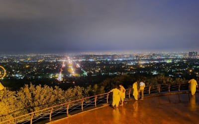 Daman-e-Koh is a viewing point and hill top garden north of Islamabad and located in the middle of the Margalla Hills. Its name is a conjunction of two Persian words, which together means foot hills. It is about 2400 ft from sea level and almost 500 ft from the city of Islamabad
